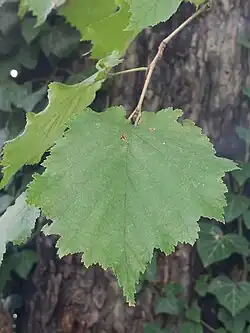 - Opadające na zimę, skrętoległe, szerokojajowate, ciemnozielone, jesienią złocistożółte. Długości 8-12 cm i prawie takiej samej szerokości. Z przodu krótko zaostrzone, na brzegach podwójnie ząbkowane lub wrębne[7].