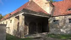 - późnoklasycystyczny dwór z I poł. XIX w., zniszczony pod II wojny światowej, odbudowany w latach 50. XX wieku