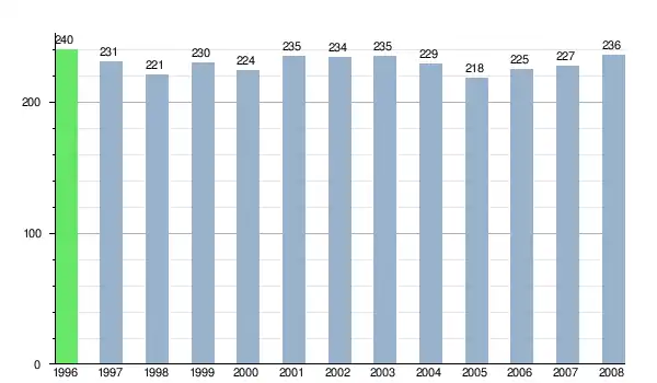 Według danych z dnia 31 grudnia 2012, wieś zamieszkiwało 248 osób, w tym 126 kobiet i 122 mężczyzn[6].