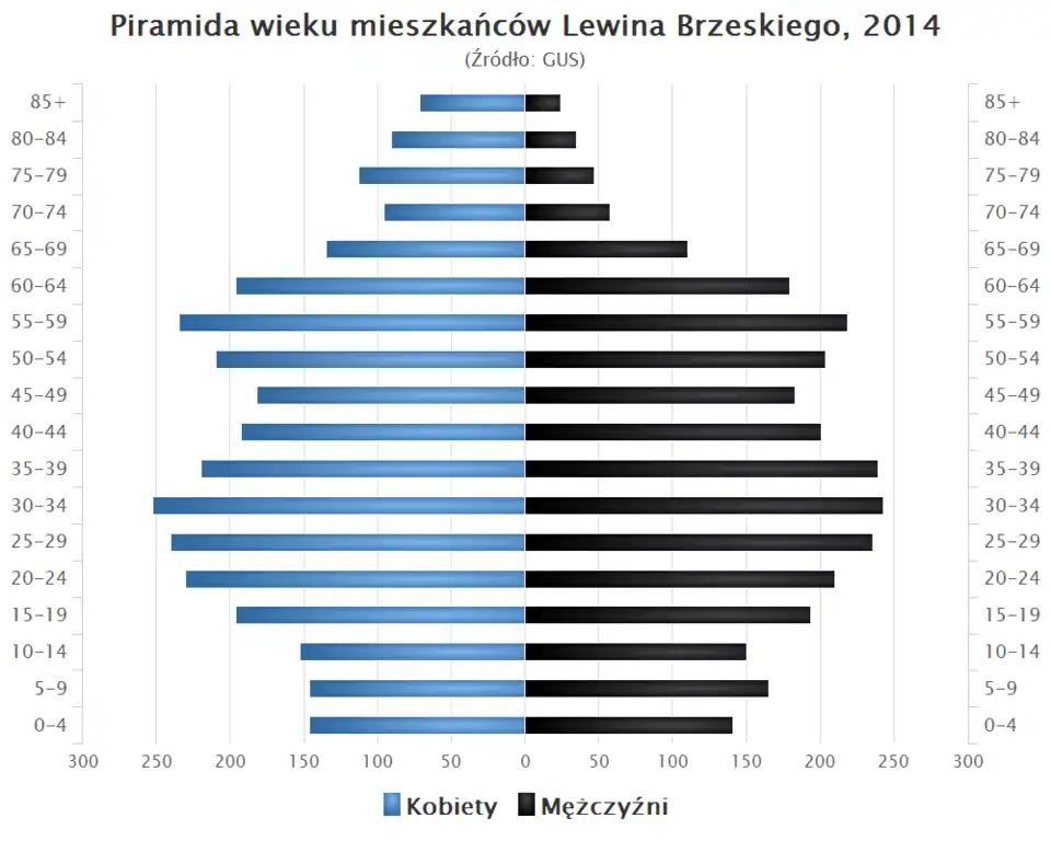 - Piramida wieku mieszkańców Lewina Brzeskiego w 2014 roku[19].
