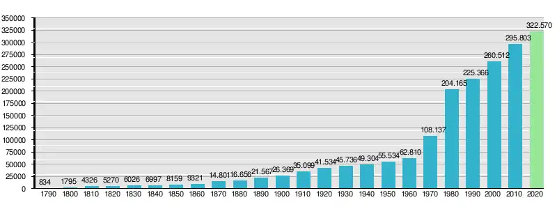 Według danych z 2021 roku, 10,1% mieszkańców urodziło się za granicami Stanów Zjednoczonych, a skład rasowy wyglądał następująco[8]: