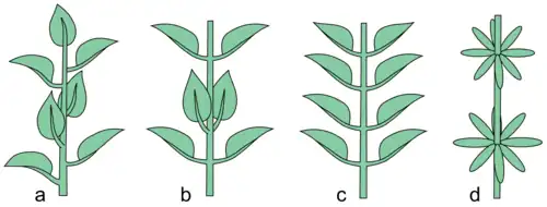 - Liście dolne (młodociane, katafile) – rozwijają się jako następne po liścieniach. Są zwykle proste i często ograniczone tylko do łuskowato rozwiniętej nasady liścia. W miarę rozwoju kolejne powstające liście stają się coraz bardziej podobne do liści formy dorosłej.