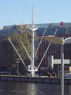 Wielu sympatyków szkoły żałowało jednak że przeniesienie Liceum Morskiego oddaliło je od portu i armatora, a statek-szkoła, który wrósł na dobre w morski pejzaż Szczecina, zniknął z nabrzeża przy Wałach Chrobrego. Został sprzedany do stoczni złomowej w Szwecji a jego maszt[5] przeniesiono na pas zieleni rozdzielający jezdnie Trasy Zamkowej w pobliżu Bramy Królewskiej. Na dole masztu znajdują się dwie tablice, z których jedna podaje krótką historię statku, a druga najważniejsze fakty z życia „kapitana kapitanów” Konstantego Maciejewicza.