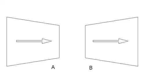 Na zwężającym się odcinku kanału ‘A’ następuje zwiększanie prędkości do prędkości dźwięku, na odcinku ‘b’ prędkość może rosnąc od prędkości dźwięku.