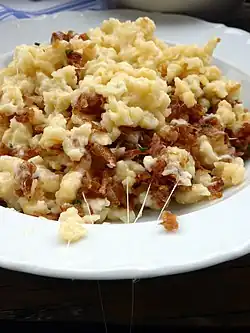 - Käsknöpfle – potrawa kuchni tyrolskiej, szwajcarskiej, niemieckiej i austriackiej, szpecle poprzekładane twardym krowim serem ze skwarkami. Na terenie Liechtensteinu i w Vorarlbergu w Austrii, potrawa jest podawana z musem jabłkowym