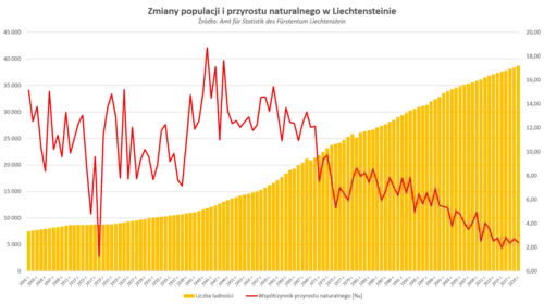 Oznacza to, że łącznie populacja Liechtensteinu zwiększyła się o 374, zatem wskaźnik przyrostu rzeczywistego wyniósł 9,5‰[9].
