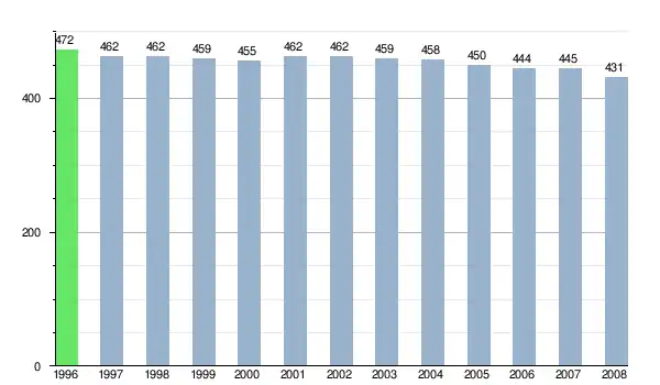 Według danych z dnia 31 grudnia 2012, wieś zamieszkiwało 459 osób, w tym 224 kobiety i 235 mężczyzn[7].