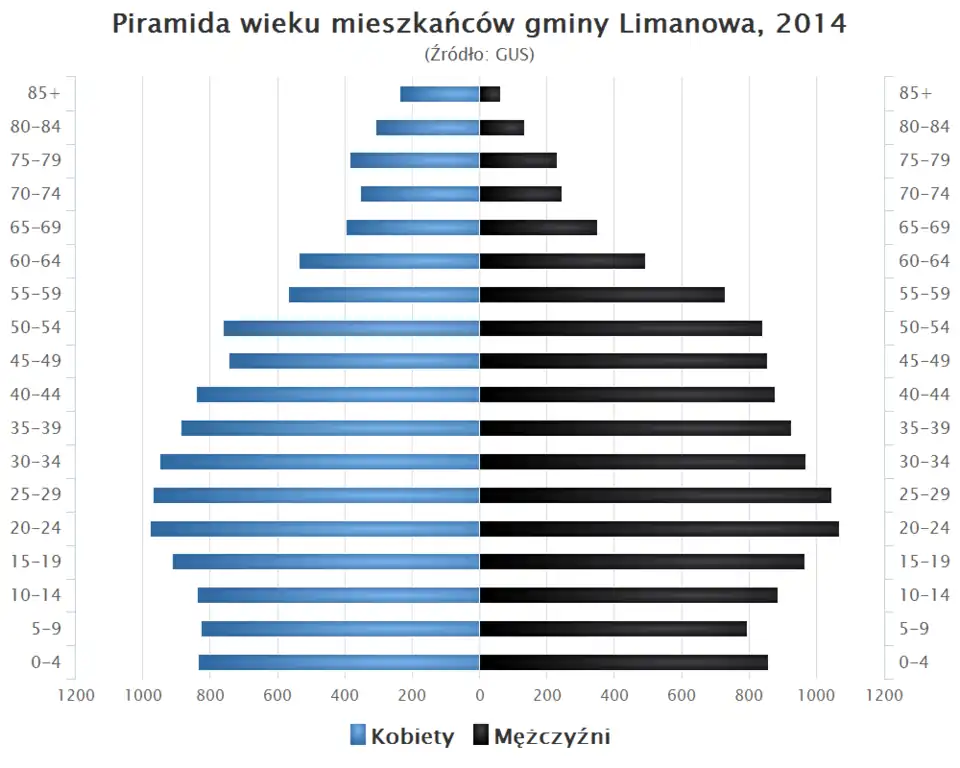 - Piramida wieku mieszkańców gminy Limanowa w 2014 roku[1].