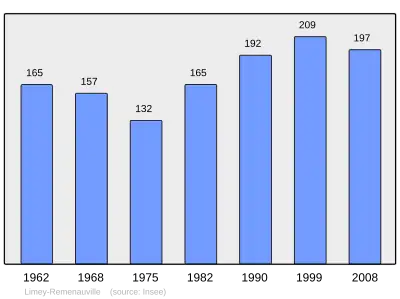 Według danych na rok 1990 gminę zamieszkiwały 192 osoby, a gęstość zaludnienia wynosiła 10 osób/km² (wśród 2335 gmin Lotaryngii Limey-Remenauville plasuje się na 853. miejscu pod względem liczby ludności, natomiast pod względem powierzchni na miejscu 195.).