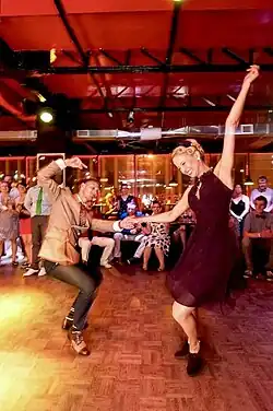 - tańczenie do muzyki na żywo w miejscach publicznych nie organizowane przez tancerzy, często znane pod nazwą "Lindy Bombing", kiedy to grupa tancerzy pojawia się na wydarzeniu, które nie jest zaplanowane jako taneczne