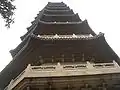 Budowę pagody rozpoczęto w 1928 roku a ukończono w 1935 roku. Jest oktagonalna, dziewięciokondygnacyjna i wysoka na 60,5 metra. Jest ozdobiona mowami i epigrafami Sun Jat-sena i Czang Kaj-szeka. Wewnątrz pagody znajdują się spiralne schody o ponad 260 stopniach, wiodące na ostatnią kondygnację. Z każdej kondygnacji można patrzeć na klasztor i na park krajobrazowy.