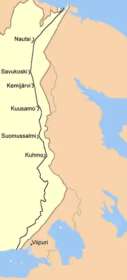 Początek linii Salpa pomiędzy jeziorem Saimaa i Zatoką Fińską. Linia kontynuuje się do północnej Finlandii.