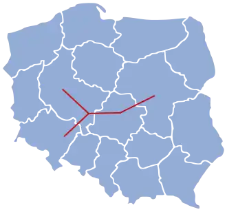 - ↑ Szybka linia kolejowa „Y” przez CPK ma być gotowa do 2030 roku [online], www.rynek-lotniczy.pl [dostęp 2023-12-19] (pol.).