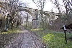 Pomiędzy Bad Bibrą a Saubach dawną trasę linii przecina nowo wybudowana szybka kolej Erfurt-Lipsk/Halle. W 2002 r. tuż za Saubachtalbrücke wybudowano wiadukt nad torowiskiem linii, mimo że torowisko linii Laucha – Kölleda jest nieużywane i częściowo rozebrane.
