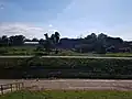 Linia kolejowa nr 151 na odcinku pomiędzy stacjami Nędza i Racibórz Markowice, na skraju rezerwatu przyrody Łężczok (po prawej). Widok w kierunku stacji Racibórz Markowice | |