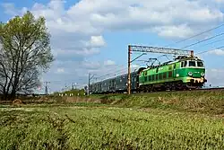 - ↑ Pierwszym elektrycznym pojazdem trakcyjnym, który przejechał tą trasą po oficjalnym oddaniu do użytku sieci trakcyjnej, była lokomotywa serii EU07.