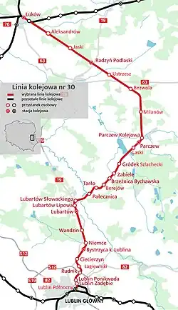 - ↑ LK 30 Lublin - Parczew - Łuków. skyscrapercity.com, 2023-11-04. [dostęp 2025-01-25]. (pol.).