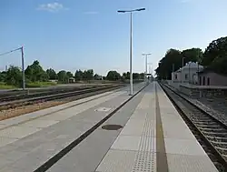 - ↑ PKP PLK, Wykaz peronów przy liniach kolejowych zarządzanych przez PKP Polskie Linie Kolejowe S.A. [online], 22 października 2024 [dostęp 2025-03-08].