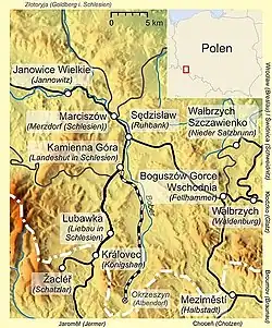 - 1 2 3 4 Janusz Kućmiń, Zapomniane linie kolejowe. Kolej żelazna w Sudetach, [w:] Pielgrzymy 1996. Informator krajoznawczy 40. Rajdu Sudeckiego SKPS, t. 1996, Wrocław: PTTK, s. 41–48, ISBN 978-83-85550-82-2 [dostęp 2015-06-12] [zarchiwizowane z adresu 2015-06-12].