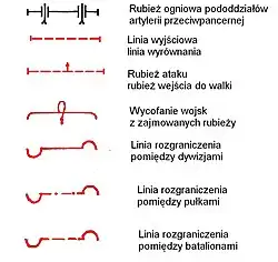 - ↑ Zbiór znaków umownych i skrótów, obowiązujących w Straży Granicznej. W: Załącznik do decyzji nr 50/98 Dyrektora Zarządu Ochrony Granicy Państwowej z dnia 17 września 1998 r.: Część III, pkt 3 – Siły, ich rozmieszczenie, pełnienie służby granicznej i prowadzenie działań granicznych. Straż Graniczna, 1998-09-17, s. 10.