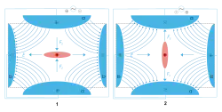 Przeciwległe pręty pułapki są ze sobą połączone elektrycznie. Do sąsiednich prętów analizatora przykładany zmienny o częstotliwości radiowej, potencjał elektryczny, zmienne pole elektryczne zmusza jony o wybranym zakresie stosunku ładunku do masy w pobliżu osi pułapki. Przy końcach pułapki umieszczone są elektrody o stałym potencjale elektrycznym uniemożliwiające ucieczkę jonów wzdłuż osi pułapki.