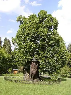 - ↑ Tablica informacyjna umieszczona przy lipie