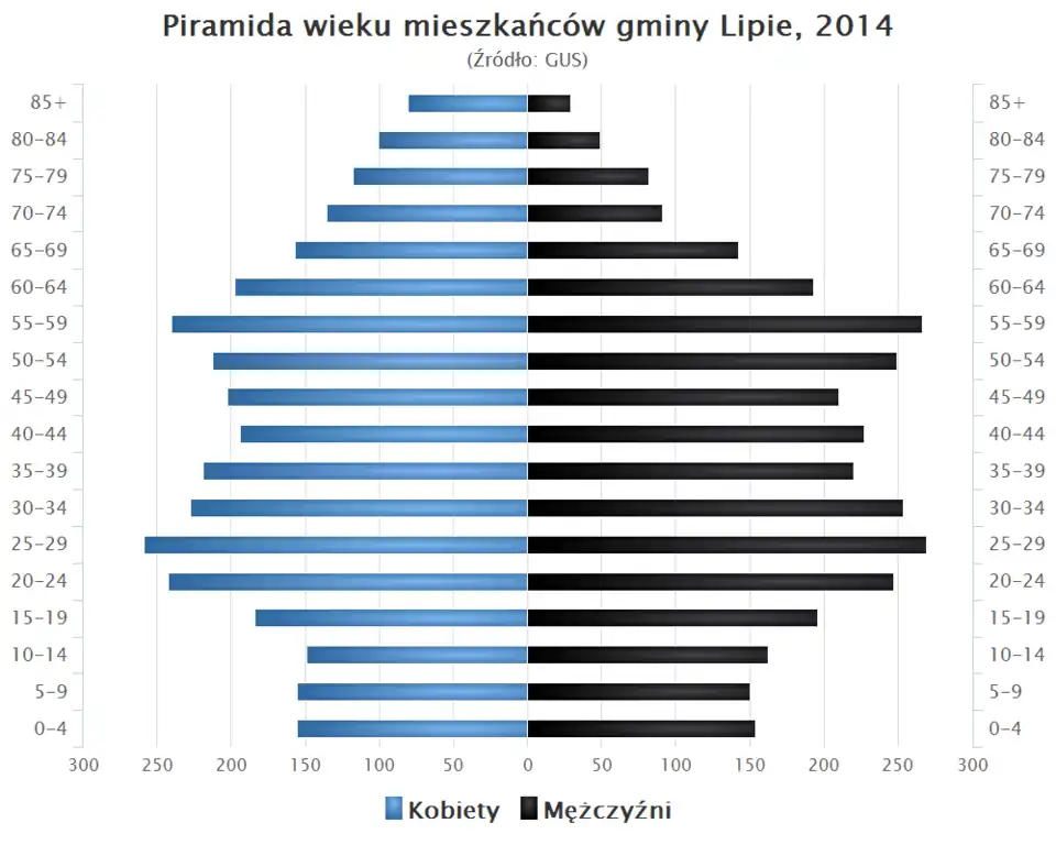 - Piramida wieku mieszkańców gminy Lipie w 2014 roku[1].