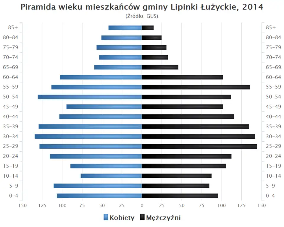 - Piramida wieku mieszkańców gminy Lipinki Łużyckie w 2014 roku[4].
