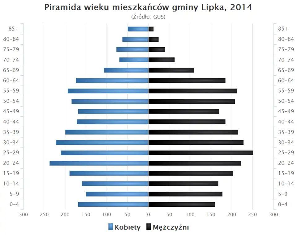 - Piramida wieku mieszkańców gminy Lipka w 2014 roku[1].