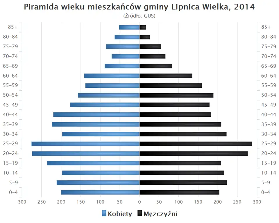 - Piramida wieku mieszkańców gminy Lipnica Wielka w 2014 roku[2].