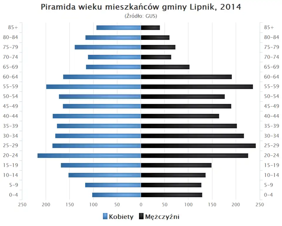 - Piramida wieku mieszkańców gminy Lipnik w 2014 roku[7].