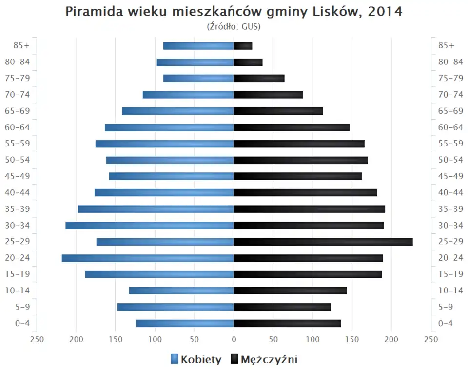 - Piramida wieku mieszkańców gminy Lisków w 2014 roku[3].