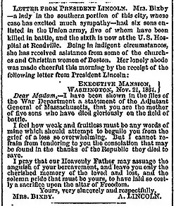 - ↑ Was This Famous Lincoln Letter Written by His Secretary?. smithsonianmag.com. [dostęp 2017-09-30]. (ang.).