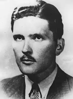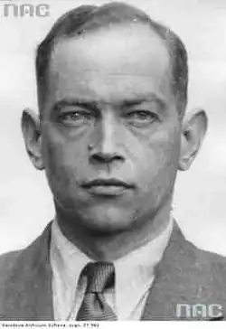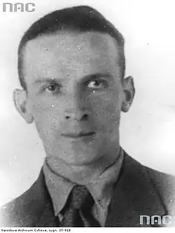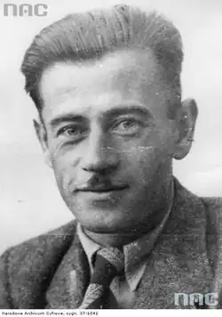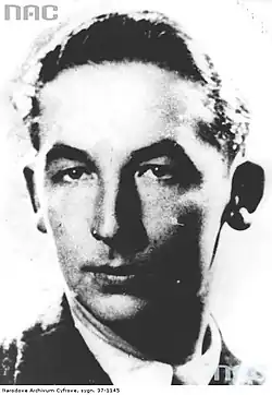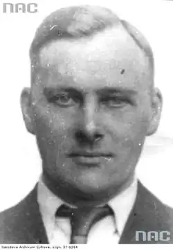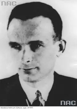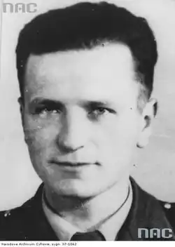 - Jan Hörl (1921-1943) ps. Frog - podporucznik broni pancernych, oficer Polskich Sił Zbrojnych na Zachodzie, Armii Krajowej, Okręgu Lublin AK, więziony i zamordowany przez gestapo (1943). Przeszkolony ze spoecjalnością w dywersji, zaprzysiężony na rotę ZWZ-AK 29 listopada 1942 w Audley End (Wielka Brytania)[189][190], zrzucony do okupowanej Polski w nocy 13/14 marca 1943 w sezonie operacyjnym "Intonacja", w operacji lotniczej „Stock”, w ekipie skoczków nr XXIV, z samolotu Halifax DT-726 "H" (138 Dywizjon RAF). Start z lotniska RAF Tempsford, wskutek błędu nawigatora zrzut poza planowaną placówkę odbiorczą „Koza”, w okolicach miejscowości Celestynów i Pilawa. Razem z nim skoczyli: ppłk. dypl. Kazimierz Iranek-Osmecki ps. Heller, ppor. Czesław Rossiński ps. Kozioł, ppor. Witold Strumpf ps. Sud[191][15].