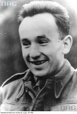 - Hieronim Dekutowski (1918-1949) ps. Zapora - major, harcerz, żołnierz Polskich Sił Zbrojnych na Zachodzie, oficer Armii Krajowej, szef Kedywu Inspektoratu Rejonowego Lublin-Puławy AK, dowódca oddziałów partyzanckich AK, oficer Delegatury Sił Zbrojnych na Kraj, Zrzeszenia WiN, żołnierz wyklęty, więzień UB, torturowany, zamordowany (Warszawa, 1947-1949)[16]. Przeszkolony ze specjalnością w dywersji, zaprzysiężony na rotę ZWZ-AK 4 marca 1943 w Audley End (Wielka Brytania)[116][117], zrzucony do okupowanej Polski w nocy w nocy 16/17 września 1943 w sezonie operacyjnym "Riposta", operacji „Neon 1”, w ekipie skoczków nr XXXI, z samolotu Halifax BB-378 "D" (138 Dywizjon RAF). Start z lotniska RAF Tempsford pod Londynem, zrzut na placówkę odbiorczą "Garnek", ok. 8 km od stacji kolejowej Wyszków. Razem z Nim skoczyli: kpt. dypl. Bronisław Rachwał ps. „Glin” oraz kurier ppor. Kazimierz Smolak ps. „Nurek”[118][15].