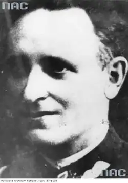 - Andrzej Czaykowski (1912-1953) ps. Garda - major, harcerz, żołnierz Armii Krajowej, oficer Wojska Polskiego, Armii Polskiej gen. Andersa, Armii Krajowej, Komendy Głównej AK, uczestnik Powstania Warszawskiego, więzień sowieckich łagrów: Kargopol, Archangielsk (1940-1941)[23], więzień gestapo, obozów koncentracyjnych: KL Gross-Rosen, KL Mittelbau-Dora[30], więzień UB, skazany na śmierć, zamordowany (1951-1953)[16]. Przeszkolony ze specjalnością w dywersji i odbiorze zrzutów, zaprzysiężony na rotę ZWZ-AK 3 września 1943[99][100], zrzucony do okupowanej Polski w nocy 16/17 kwietnia 1944 roku w sezonie operacyjnym "Riposta", w operacji lotniczej „Weller 10”, w ekipie skoczków nr XLIV, z samolotu Halifax JP-222 „E”(1586 Eskadra PAF). Start z lotniska Campo Casale nieopodal Brindisi, zrzut na zapasową placówkę odbiorczą „Przycisk”, w okolicy miejscowości Kazimierzów, 7 km od Sochaczewa. Razem z nim skoczyli: ppor. Tadeusz Nowobilski ps. Dzwon, kpt. Leopold Skwierczyński ps. Aktor, ppłk. dypl. Adam Szydłowski ps. Poleszuk[101][15].