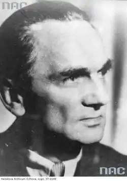 - Henryk Januszkiewicz (1917-1996) ps. Spokojny - kapitan, harcerz, oficer Polskich Sił Zbrojnych na Zachodzie, Armii Krajowej, Kedywu Okręgu Kraków AK, uczestnik zamachu na Hansa Franka, więzień UB, torturowany, skazany (Warszawa, 1945-1950)[16], represjonowany. Przeszkolony ze specjalnością w dywersji, zaprzysiężony na rotę ZWZ-AK 26 października 1942 w Audley End (Wielka Brytania)[217][218], zrzucony do okupowanej Polski w nocy 16/17 lutego 1943, w sezonie operacyjnym "Intonacja", w operacji lotniczej „Saw”, w ekipie skoczków nr XX, z samolotu Halifax DT-725 "J" (138 Dywizjon RAF). Start z lotniska RAF Tempsford, zrzut na placówkę odbiorczą "Koń", w okolicach miejscowości Sulejów, widły Pilicy i Czarnej, 21 km od Piotrkowa Trybunalskiego. Razem z nim skoczyli: ppor. Michał Busłowicz ps. Bociek, ppor. Bolesław Odrowąż - Szukiewicz ps. Bystrzec, ppor. Adolf Pilch ps. Góra[76][15].