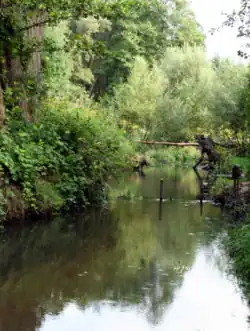 W górnym biegu rzeki znajduje się przy niej spora liczba stawów rybnych. Obecnie jest ona jednak o wiele mniejsza niż w XIX czy XVIII wieku. Stawy te wcześniej powstawały poprzez budowanie wałów i spiętrzanie wody nawet w pobliżu źródeł rzeki. Do tej pory wały te zachowały się w formie szczątkowej.