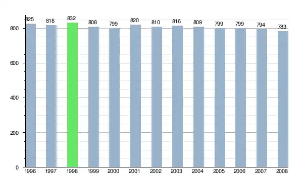 Według danych z dnia 31 grudnia 2012, wieś zamieszkiwało 767 osób, w tym 386 kobiet i 381 mężczyzn[7].