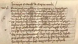Najdłuższym i najstarszym tekstem w języku kornijskim jest anonimowy glosariusz napisany w XII-XIII w. przedstawiający listę łacińskich słów wraz z ich kornijskim odpowiednikiem[1]. Kolejnym przykładem tekstu w języku kornijskim jest utwór znany jako Charter Endorsement składający się z 41 wersów z XV w. spisany na drugiej stronie dokumentu z St Stephen-in-Brannel.
