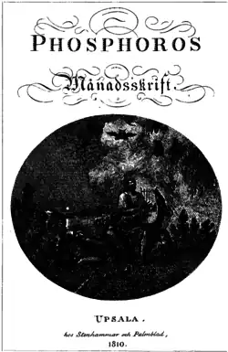 W 1810 roku pojawiły się dwa pisma literackie – Polyfem w Sztokholmie i Phosphoros w Uppsali – które przeciwstawiały się klasycyzmowi z kręgu Akademii Szwedzkiej i przyczyniły się do rozwoju romantyzmu[50]. Wokół nich zgromadziła się grupa twórców określana nazwą nowi romantycy (szw. nyromantikerna). Do jej członków należał Per Daniel Atterbom (1790–1855), który stał się jednym z najważniejszych przedstawicieli tej epoki w Szwecji. Przyjaciel Atterboma Erik Gustaf Geijer (1783-1847), a także Esaias Tegnér (1782–1846) reprezentowali romantyzm o charakterze narodowym, który odwoływał się do staronordyckiej historii i tradycji szwedzkiego gotyzmu. Geijer w swoim wierszu Vikingen (Wiking) wprowadził do literatury wikingów, którzy byli głównymi bohaterami Frithiofowej sagi (szw. Frithiofs saga) Tegnéra i wielu późniejszych tekstów[51][52]. Znaczącą rolę w propagowaniu szwedzkiej ludowości oraz tradycji nordyckiej w literaturze religijnej tych czasów odegrał Johan Olof Wallin (1779–1839), który był głównym redaktorem i twórcą wielu utworów ze szwedzkiego zbioru psalmów z początku XIX wieku (1819 års psalmbok)[53][54].