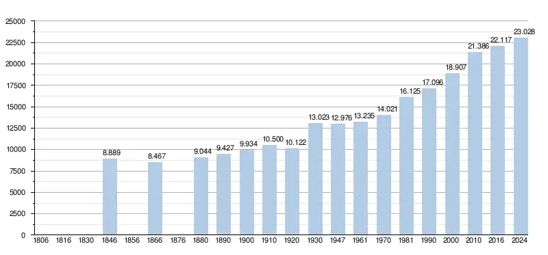 - Źródła: NIS, od 1806 do 1981= według spisu; od 1990 liczba ludności w dniu 1 stycznia