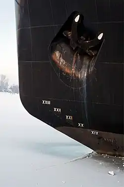 - Zwiększoną masę, aby łatwiej kruszyć lód własnym ciężarem, gdy ich silniki wpychają statek na lód