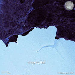 ![]() Lodowiec Szelfowy Amery’ego – zdjęcie satelitarne Amery's loose tooth (2012) | |