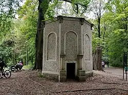 Usytuowana jest w północnej części parku, na nieznacznym wzniesieniu na lewym brzegu doliny Pszczynki, z którego widok sięga ponad rozlewiskami rzeki aż po zamek. Wzniesiona w stylu neoromańskim[2], murowana na planie regularnego sześcioboku, nakryta obecnie płaskim dachem. Ściany ozdobione ślepymi imitacjami okien, w jednej z nich niskie wejście.
