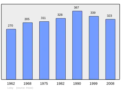 Według danych na rok 1990 gminę zamieszkiwało 367 osób, a gęstość zaludnienia wynosiła 66 osób/km² (wśród 2335 gmin Lotaryngii Loisy plasuje się na 690. miejscu pod względem liczby ludności, natomiast pod względem powierzchni na miejscu 960.).