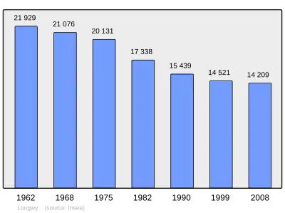 Według danych na rok 1990 gminę zamieszkiwało 15 439 osób, a gęstość zaludnienia wynosiła 2891 osób/km² (wśród 2335 gmin Lotaryngii Longwy plasuje się na 18. miejscu pod względem liczby ludności, natomiast pod względem powierzchni na miejscu 980.).