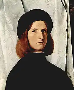 - Portret młodego mężczyzny w pracowni – 1527, olej na płótnie, 98 × 111 cm, Gallerie dell’Accademia, Wenecja