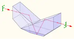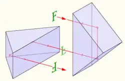 - lorneta pryzmatyczna – w której rozstaw obiektywów lunet jest większy niż rozstaw oczu człowieka, a różnica odległości pomiędzy środkami obiektywów (czyli osiami lunet) a środkami okularów (czyli osiami oczu człowieka) jest niwelowana poprzez zastosowanie pryzmatów. W lornetach tego typu zarówno obiektywy, jak i okulary, są skupiające, a pryzmaty znajdują się pomiędzy nimi. Lornety pryzmatyczne umożliwiają stosowanie większych szkieł, a co za tym idzie uzyskiwanie większych jasności, dając obraz prosty dzięki pryzmatom mającym dwa zadania – niwelowanie odległości pomiędzy obiektywami lornety oraz skracającymi znacznie układ optyczny do poręcznych rozmiarów, ale także odwracanie obrazu. Dodatkową zaletą lornet pryzmatycznych jest możliwość precyzyjnej regulacji rozstawu okularów do rzeczywistej szerokości rozstawu oczu człowieka, co przy lornetach prostych (teatralnych) jest niemożliwe. Większość lornet to właśnie lornety pryzmatyczne – nazywane są lornetkami polowymi. Są to np. lornetki turystyczne czy wojskowe.