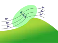 Gdy prędkość wznoszenia się powietrza zrównoważy, lub przekroczy wartość opadania szybowca, lotni, lub paralotni – powstają warunki do lotu żaglowego wzdłuż nawietrznej strony przeszkody, lub wznoszenia się nad nią do wysokości maksimum kilkuset metrów (ponad przeszkodę). Może to być bezwzględnie wysoko, jeśli wysoka jest przeszkoda. Lot żaglowy jest związany z dynamicznym opływaniem przeszkody przez wiatr, ale ten może być wzmacniany oddziaływaniem kominów termicznych, lub strumieniami termiki skalnej, dlatego poprawniejsze jest określenie – lot w prądach zboczowych.